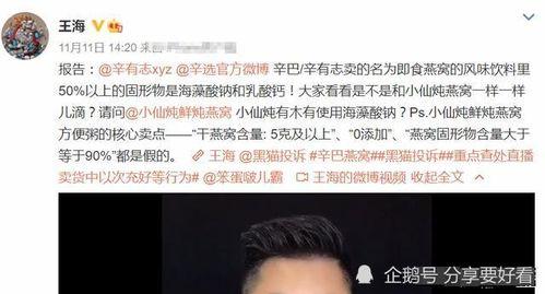最近网上可是炸开了锅,辛巴燕窝事件又有了新动态!你有没有听说?咱们一起来聊聊这个话题,看看这背后到底隐藏着怎样的秘密。